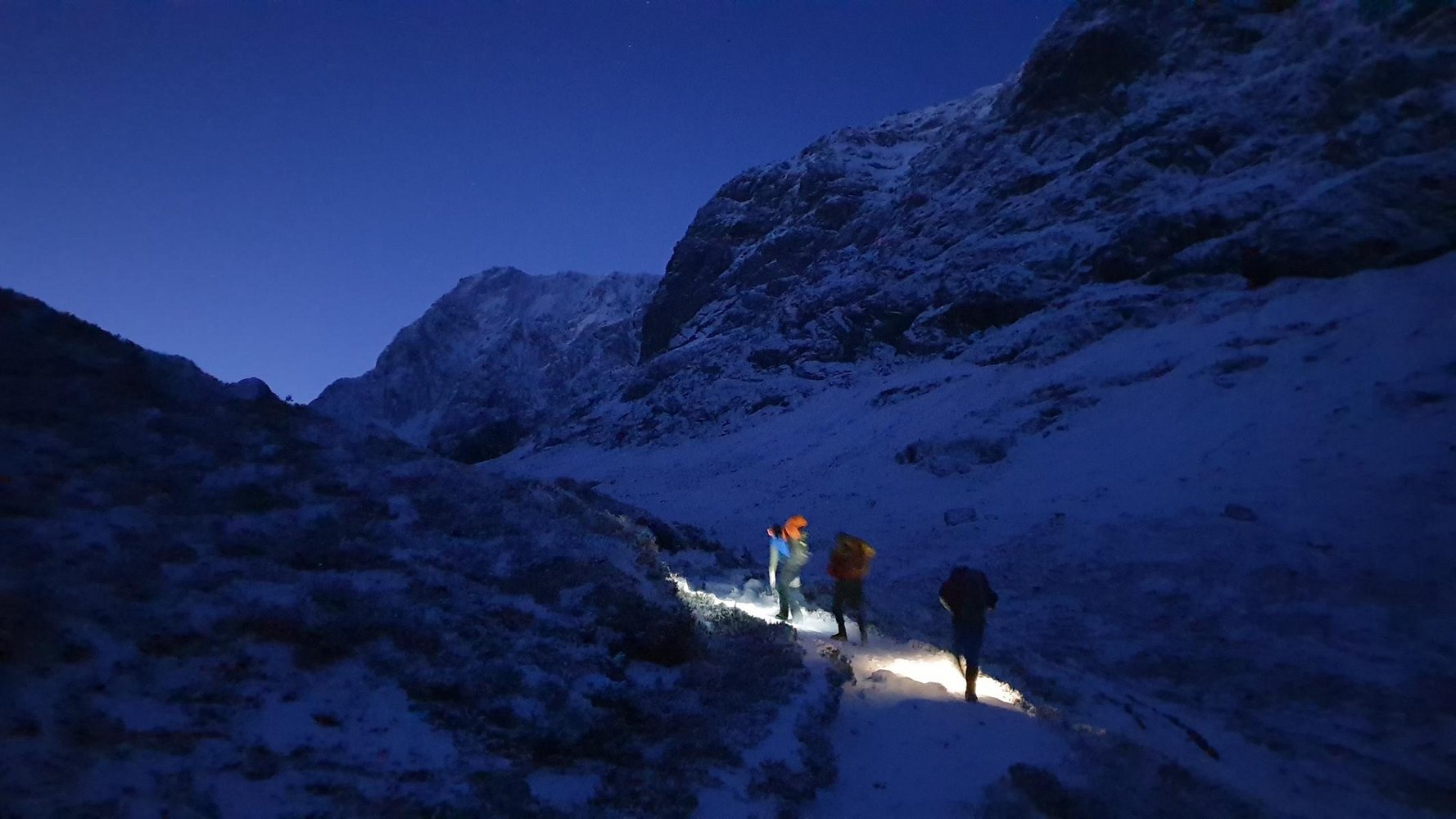 1. Winterbegehung: Norman Collie, Godfrey Solly und J.Collier am 29. März 1894