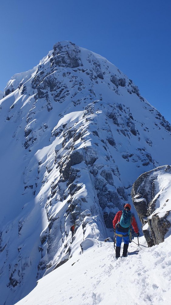 ACHTUNG: Die Verhältnisse sind nur ganz, ganz selten so gut, wie auf unseren Bildern, denn der Ben Nevis ist berühmt und berüchtigt für seine Stürme und sein Schlechtwetter. Dann können die Felsen auch mit Schnee oder blanken Eis überzogen sein und die Schwierigkeiten erhöhen sich erheblich. Auch der Abstieg darf bei Sturm und schlechter Sicht nicht unterschätzt werden, da es rechts und links Absturzgelände gibt!