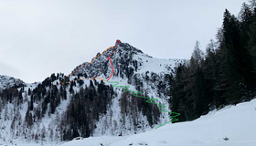 Es sollte dringend beachtet werden, dass keine nennenswerten Absicherungen möglich sind. Achtung auch auf sichere Lawinenverhältnisse!