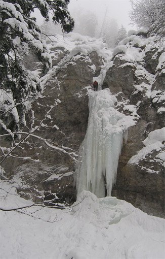 Zwei schöne Zapfen in einer Schlucht gleich bei Strub. Durch den kurzen Zustieg und die geringe Lawinengefahr als Ausweichziel nicht uninteressant.