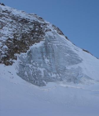 Die doch relativ unbekannte NW-Wand des Weißkugels stellt ein ansprechendes Eisziel auf den dritt höchsten Berg Österreichs dar. Bei guten Verhältnisse im Frühsommer kann man die Wand ohne Felsberührung durchsteigen, wobei der untere Teil - also das große Eisfeld - meist schon blank ist.
