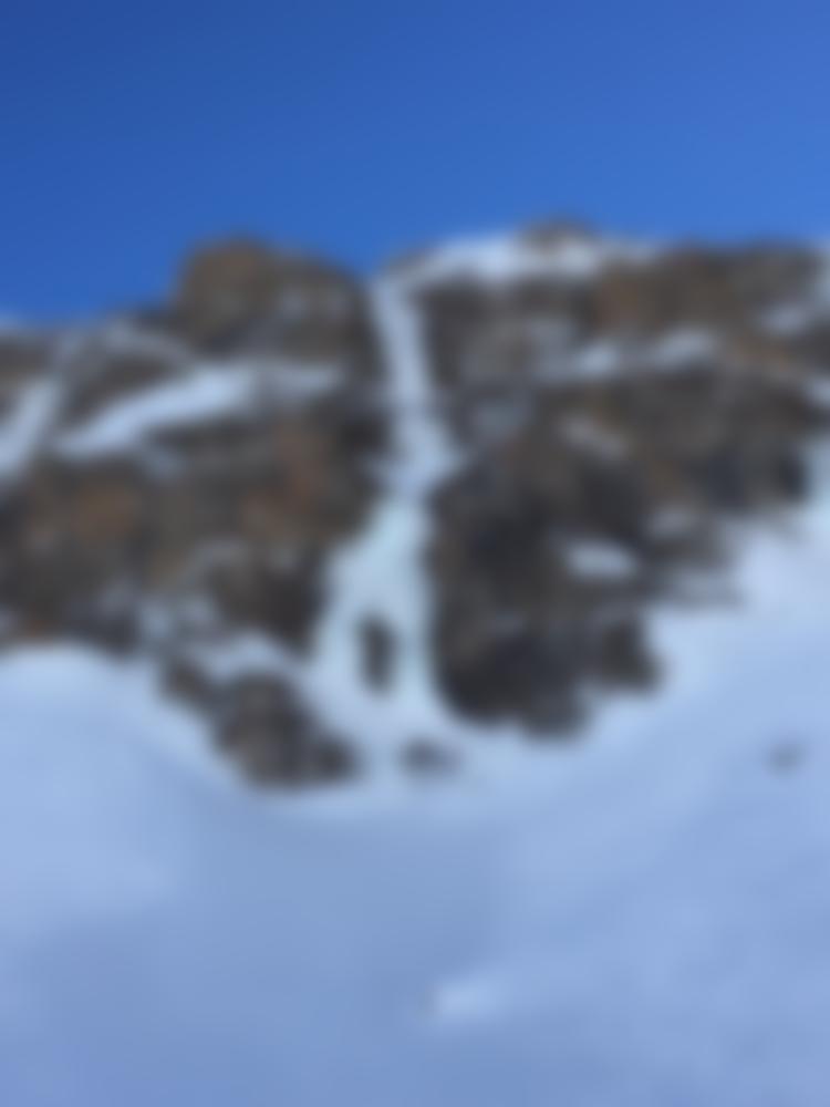 Von dort geht man nach Norden bis auf ca. 2.640m, wo man durch eine Rinne wieder nach Westen absteigen kann. Danach einfach über den Westhang zum Einstieg, bzw. zum Skidepot unterhalb des Einstiegs queren.