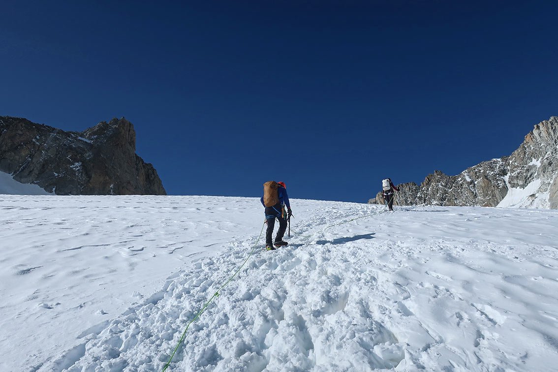 Die Überschreitung der Aiguille d'Entrèves ist eine der beliebtesten Grattouren im Mont Blanc Massiv. Eine geniale Halbtages-Gratklettertour von der Torinohütte. Die Aiguille d´Entreves eignet sich perfekt zum Akklimatisieren oder einfach zu ein bisschen entspannt Grat-kraxeln. Beim Klettern hat man immer die bekannten Kletterzapfen um den Grand Capucin und die mächtige Brenvaflanke mit dem Mont Blanc im Blick.