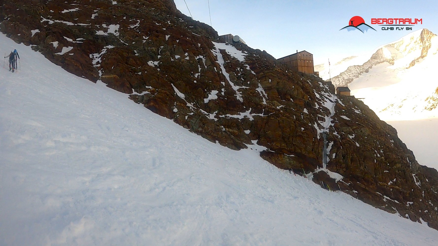 Zustieg: bequem vom Jungfraujoch- Ausgang Sphinxstollen (3464 m)- über den Jungfraufirn südostwärts auf den Konkordiaplatz hinunter und über die weite Fläche an seinem Ostrand zum Skidepot der Konkordiaütte (ca. 2700 m). Dann Aufstieg zur Grünhornlücke (3.277 m) genau Richtung Osten und Abfahrt zum Fieschergletscher. Von dort in wenigen Minuten zur Finsteraarhornhütte rauf (rd. 80 Hm). Gesamt rund 600 Hm und 2-3 Stunden.