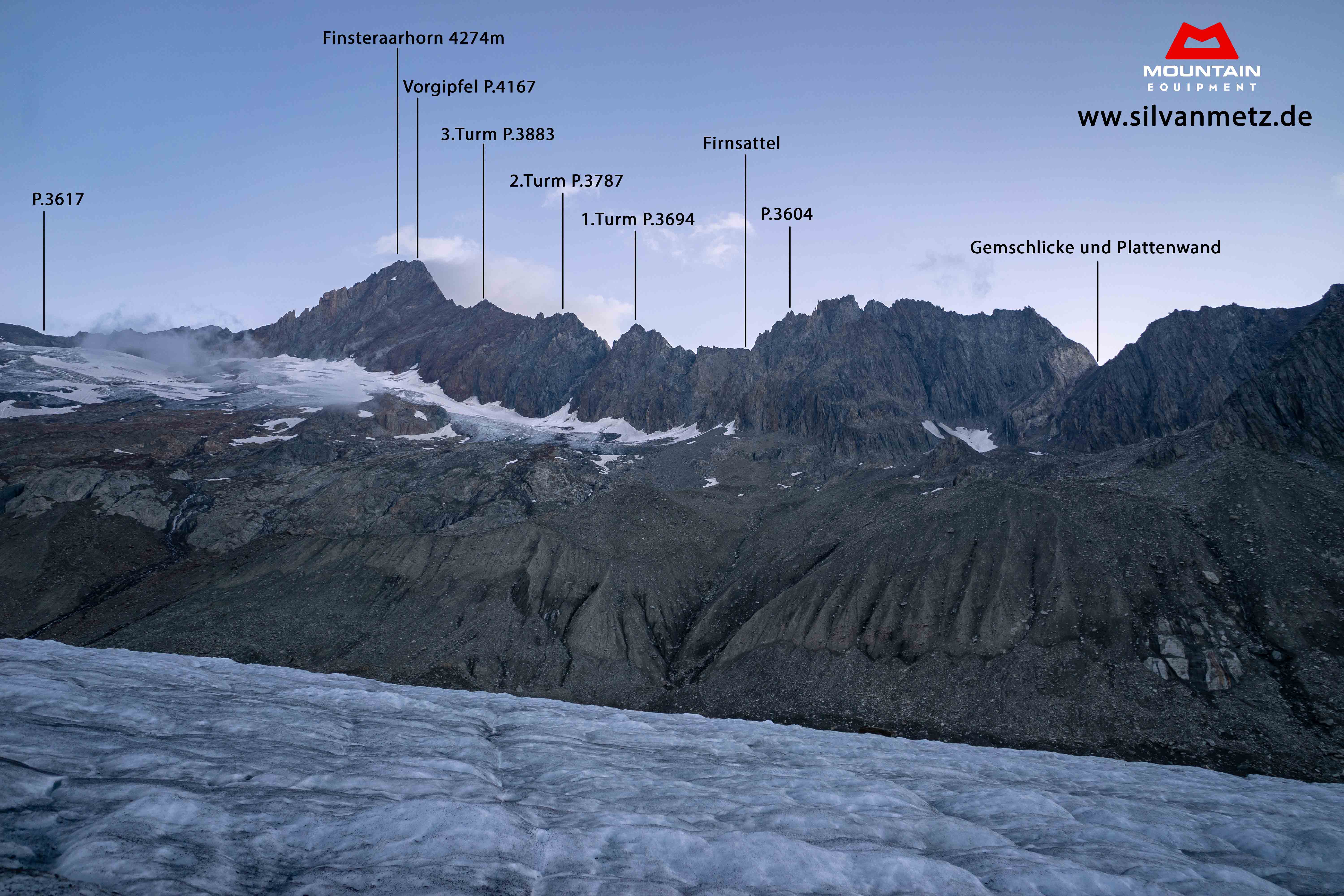 Die Tour ist theoretisch auch von der Oberaarhütte machbar, dann ca 1,5h mehr. Allerdings lässt sich der Einstieg dann nicht am Vortag auskundschaften. Früh in der Saison ist der Rückweg über die Gemschlicke eine gute Option, in dem Fall könnte das Biwakmaterial an der Gemschlicke deponiert werden und nach einer Nacht auf der Finsteraarhornhütte wieder eingesammelt werden.
