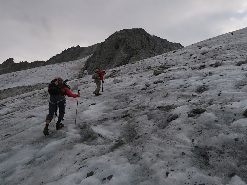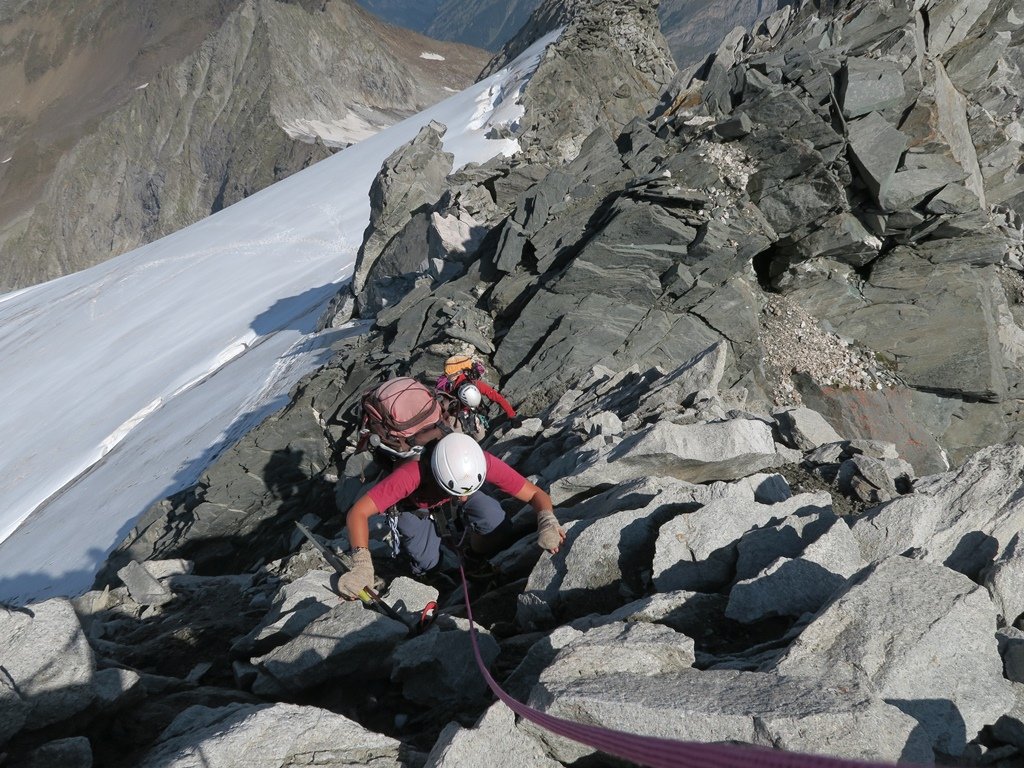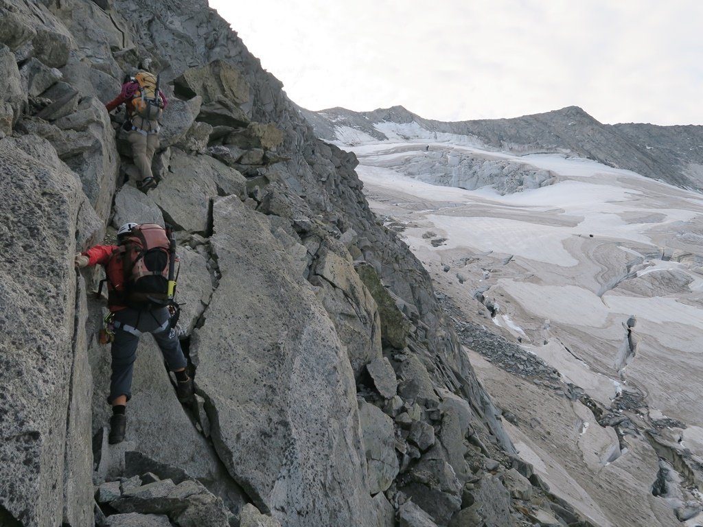 Bei Ausaperung die Eisflanke besser einzeln begehen oder mit Eisschrauben sichern,