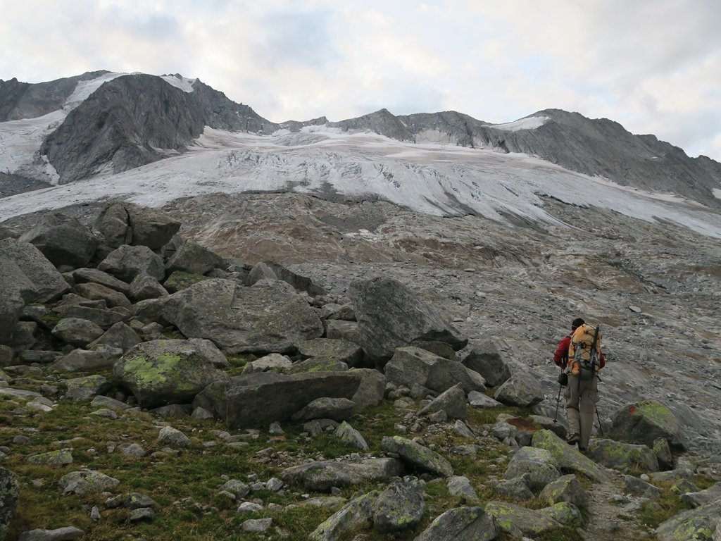 Zustieg vom Furtschaglhaus zum stark zurückgegangenen Schlegeiskees (Gletscherstand: August 2017),