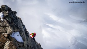 Im Aufsteig werden alle Kletterschwierigkeiten im festen Fels überwunden, nur im Abstieg muss urz mit brüchigen Fels umgegangen werden. Gutes Steigeisengehen für den Abstieg nötig.