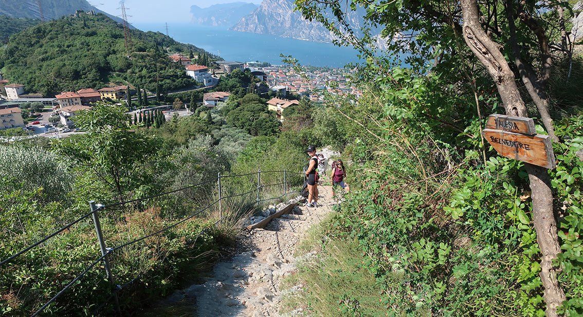 Oberer Sektor - vom Parkplatz zum Kreisverkehr, dann die erste Straße hinauf in Richtung Felsen und der Beschilderung folgen. Den unteren, einfachen Sektor (Settore Basso) erreicht man schneller von unten. Man geht etwas auf der stark befahrenen Straße in Richtung Arco, dann zu den sichtbaren Felsen hinauf (im Track der Abstiegsweg; Achtung: Die Straße ist sehr stark befahren!)