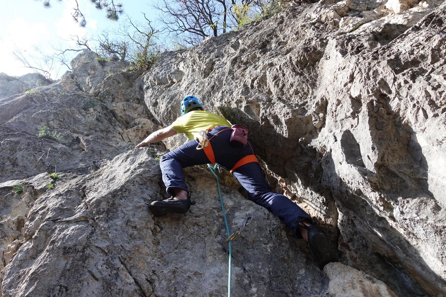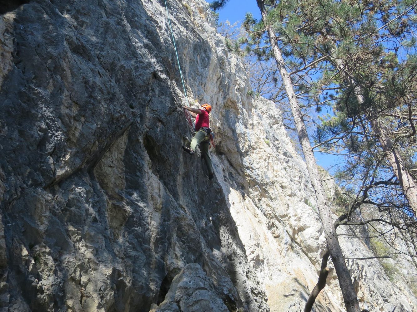 Relativ neuer Klettergarten rechts vom Tirolersteig. Fast alle Routen wurden 2023 von Thomas Behm ausgegraben und abgesichert. Man klettert an Platten aber auch an steilen Wänden und Dächern. Die leichten Routen sind eher unlohnend, besser wird es ab dem 6ten Grad. Der Einstiegsbereich ist auch im Sommer durch Bäume etwas im Schatten.