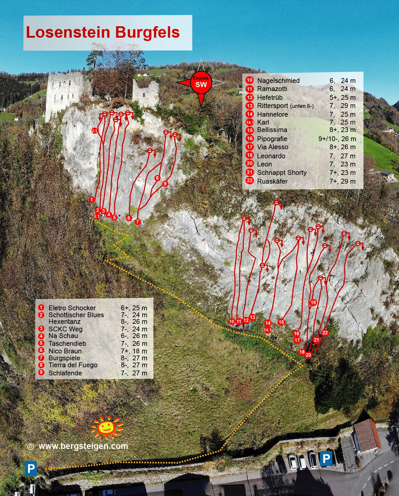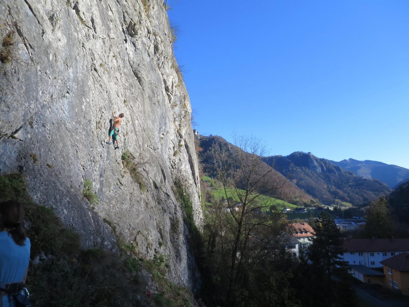 Dafür ist der Burgfels aber das perfekte Winterklettergebiet im Ennstal. Die Wand ist im Dez. - Jän. allerdings nur von 10 bis 14 Uhr in der Sonne.