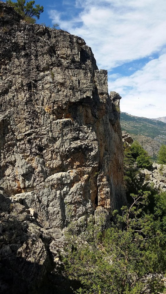 Schöner und großer südseitiger Klettergarten unweit südlich von Briancon, wo auch Kletteranfänger auf ihre Kosten kommen. Die Kletterrouten verteilen sich auf 6 Sektoren. Hinsichtlich Gestein dominiert Gneis mit Rissen, Kanten und wenigen Löchern. Der Großteil der Routen liegt zwischen 6 und 8-.