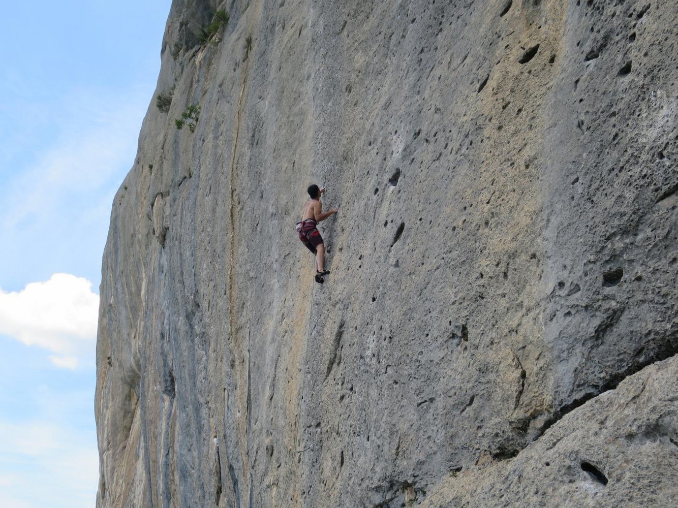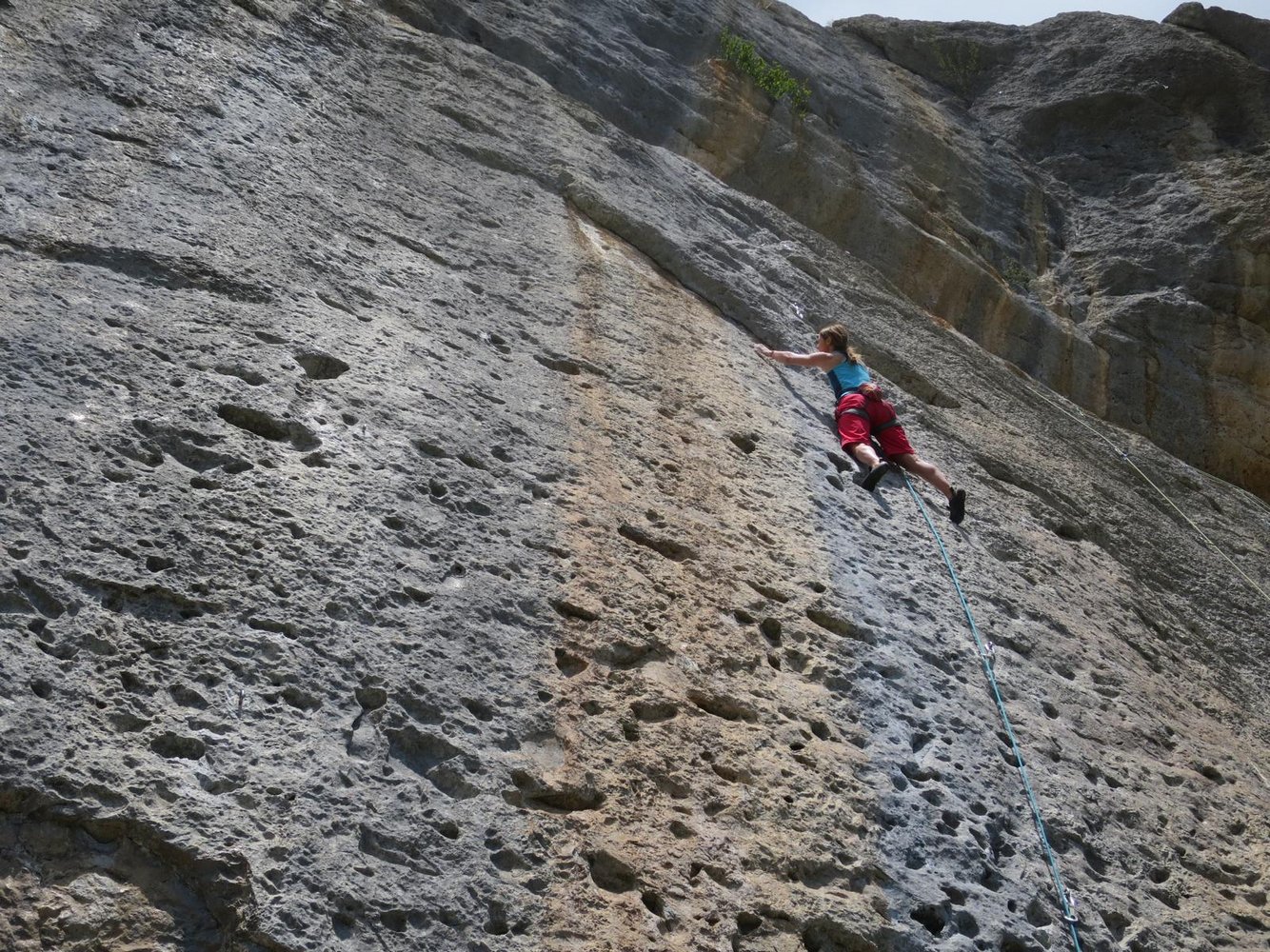 Es gibt aber auch leichtere Routen ab 5c (6), doch sollte man gut 7b klettern, um in diesem Klettergebiet in Frankreich auch richtig Spaß zu haben. Dazu kommt noch, dass die Bewertung eher hart ist und die Bohrhaken Abstände weit sind.