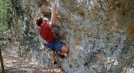 Der beste Ausdauerboulder im Wiener Raum (deshalb auch einmal mit Topo....). Der Boulder ist sehr lang und hat eine schwere Passage. Da der Boulder aber großteils leichte und sehr leichte Abschnitte hat, ist er auch für den Anfänger geeignet. Die Kletterei ist meist großgriffig! Für den 8er Mover heißt es, einfach so lange Klettern bis der Saft ausgeht. Links vom Chanso gibt es einen kurzen Plattenboulder (6+)....