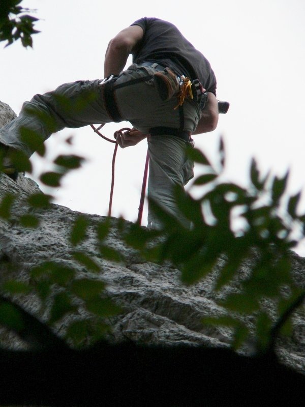 Etwas weiter oben ist die Sturmwand mit 4 kurzen Routen. Siehe Topo und Übersicht.