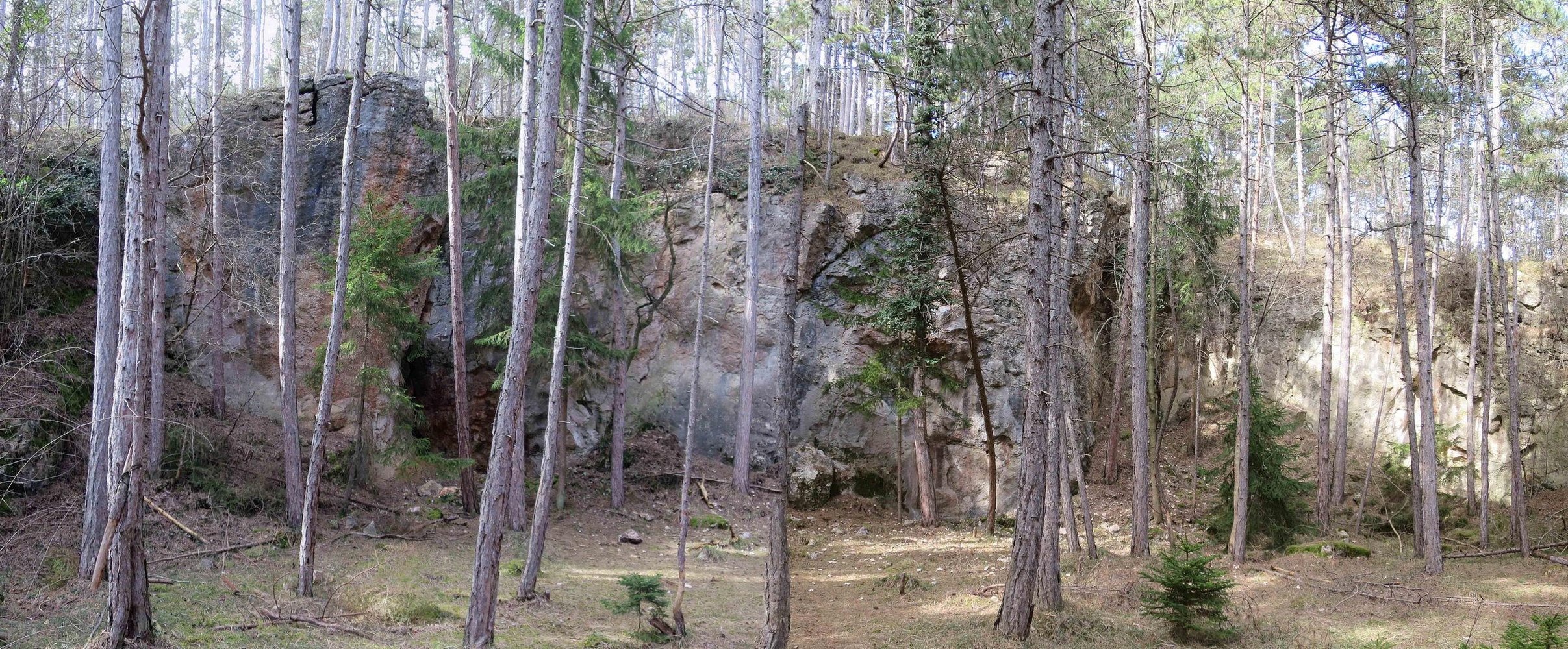 Auch im zweiten Steinbruch bei der Eisensteinhöhle wurden einige Kletterrouten eingerichtet. Die Routen sind allerdings sehr kurz und gut bis sehr gut abgesichert. Der Fels ist von guter bis leicht brüchiger Qualiät. Die Föhren spenden Schatten.