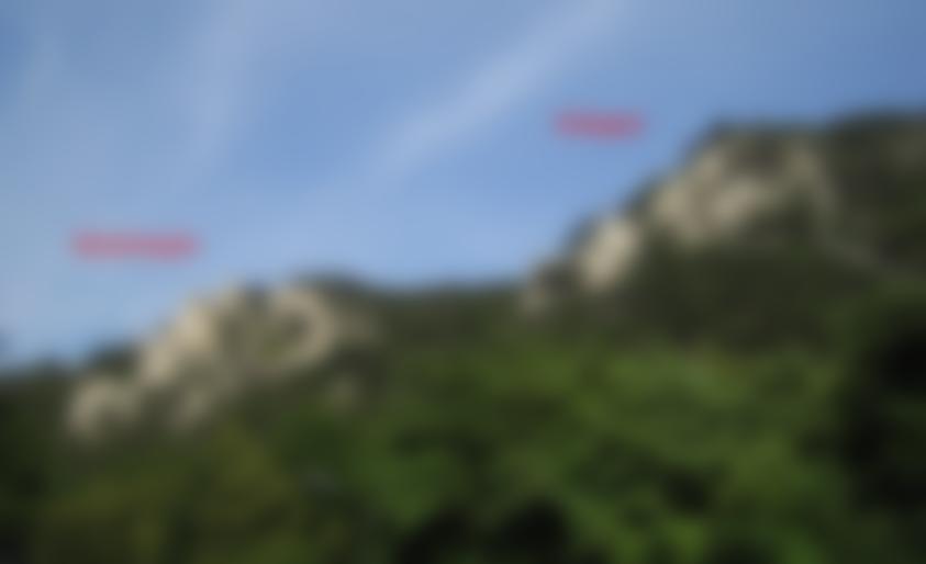 14. ROTBLIND IV: 25m, G. Zang u. J. Schmid. Ehemals mit geschlagenen Haken abgesichert, wurde die Route im Zuge der Sanierung als Ausstiegsvariante zu 12. und 13. eingerichtet. Nach großem Felssturz geputzt und nachgebohrt; dadurch sind die Haken nicht optimal gesetzt! ( Seilreibung – ev. verlängern! )