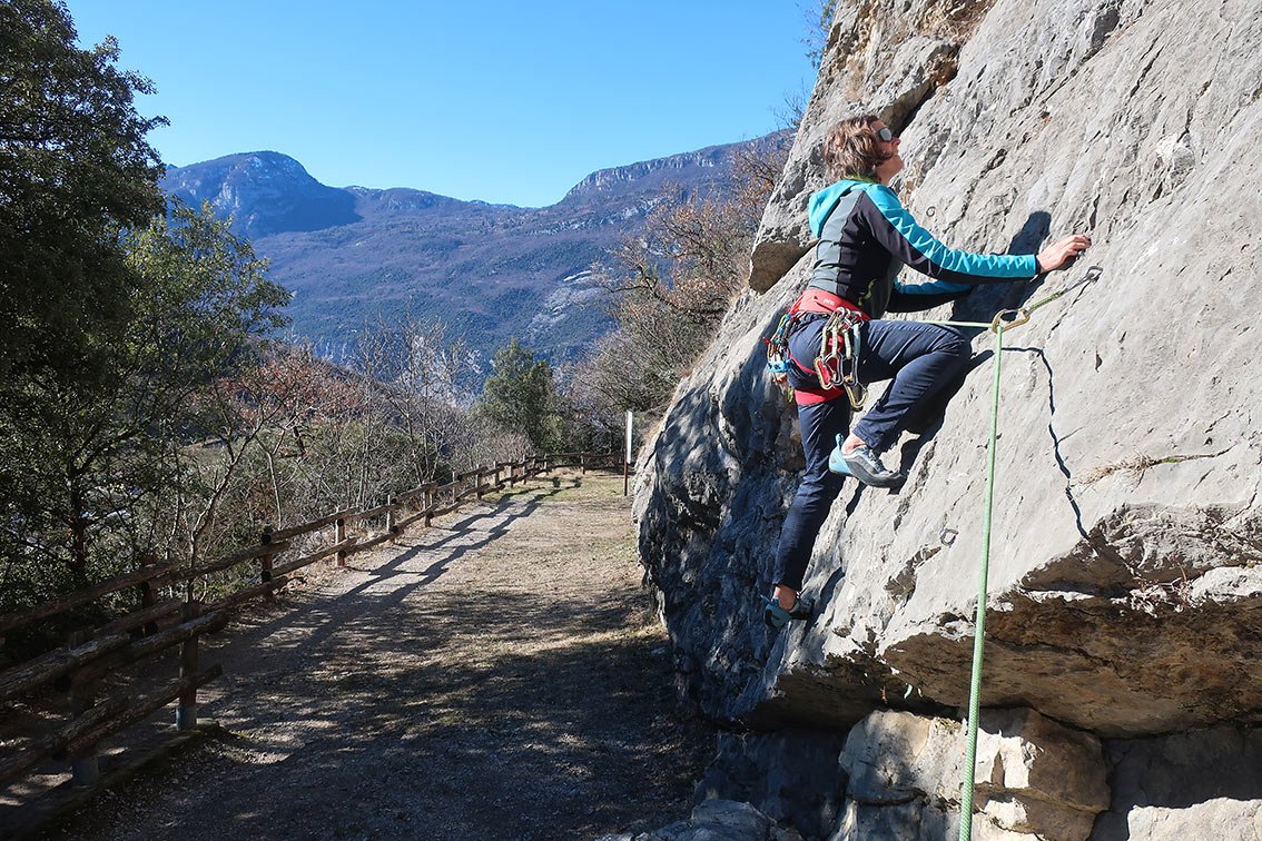 Man klettert an teilweise in den schwierigeren Routen sehr glatten Platten.