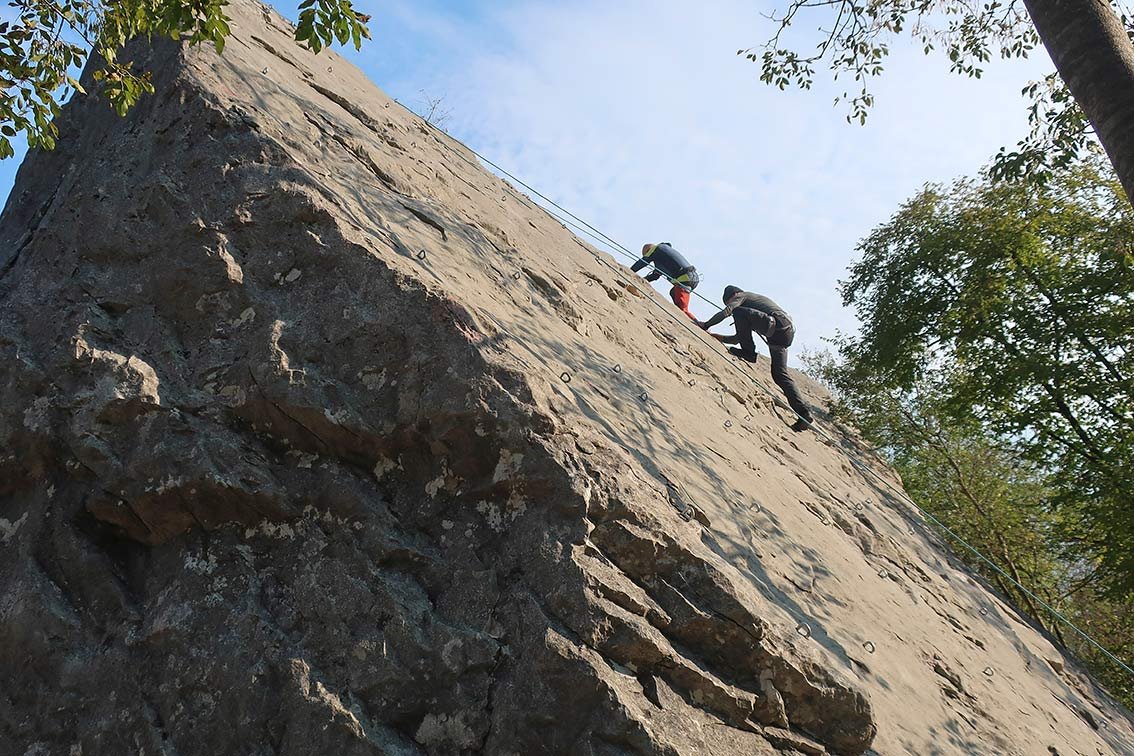 Der Klettergarten liegt im Nahbereich der Durchzugsstraße, das sollte man evtl. etwas beachten.
