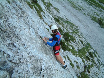 Doppelseil (im Idealfall 50 m) , 12 Expressschlingen und Helm.
