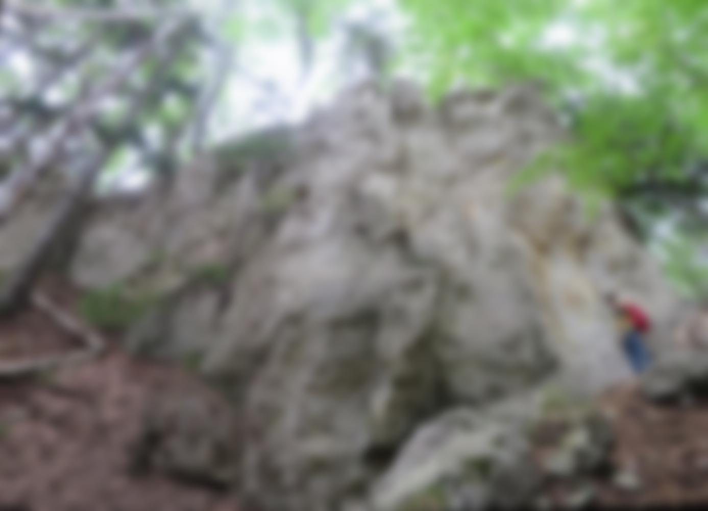 Kleiner einsamer Felsen im Wald am Südhang des Gsolberges in der Buckligen Welt. Die kurzen Routen bieten vor allem athletische Kletterei an guten Griffen.