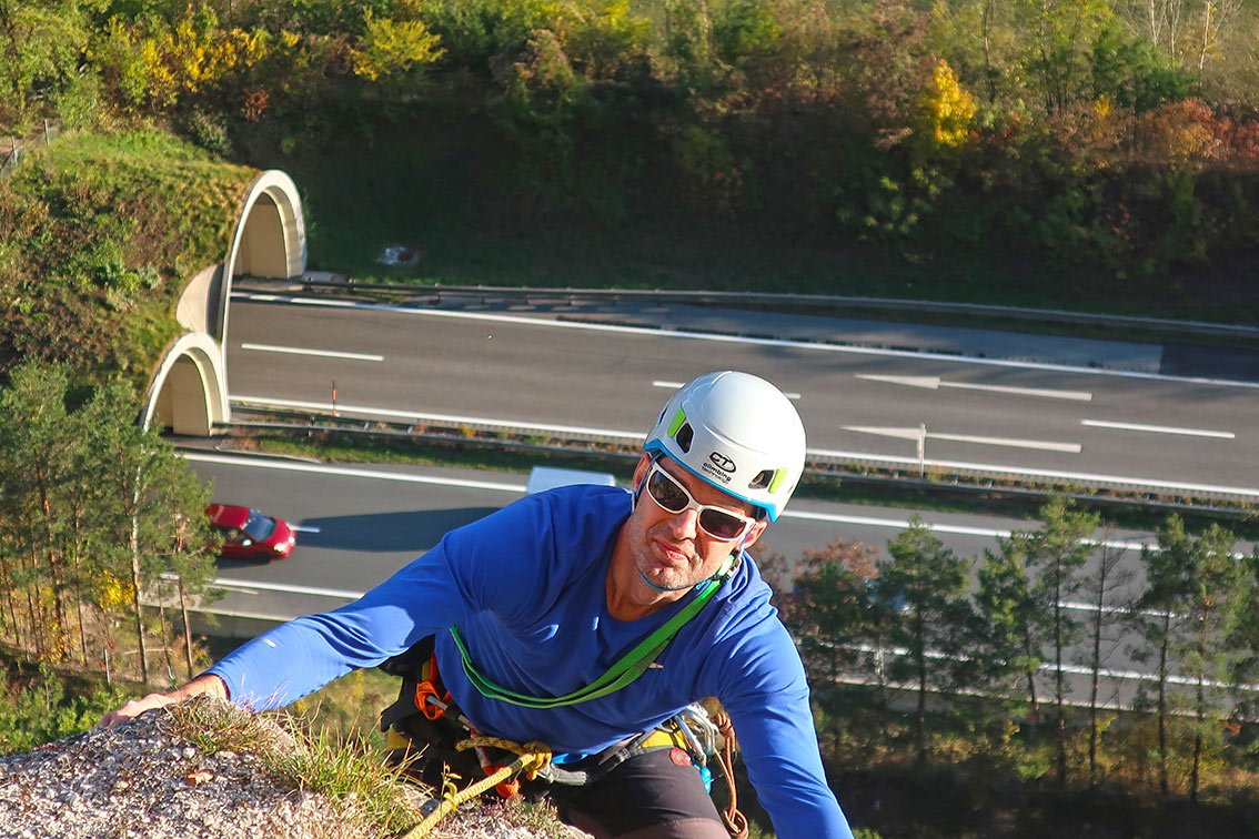 Vom Parkplatz nach dem Rafting-Center Richtung Autobahn und der Beschilderung Klettersteig folgen. Man überquert die Autobahn, geht im Zickzack den Wald hinauf und quert dann nach links zum Wandfuß (links und rechts vom Klettersteig sind die Touren).