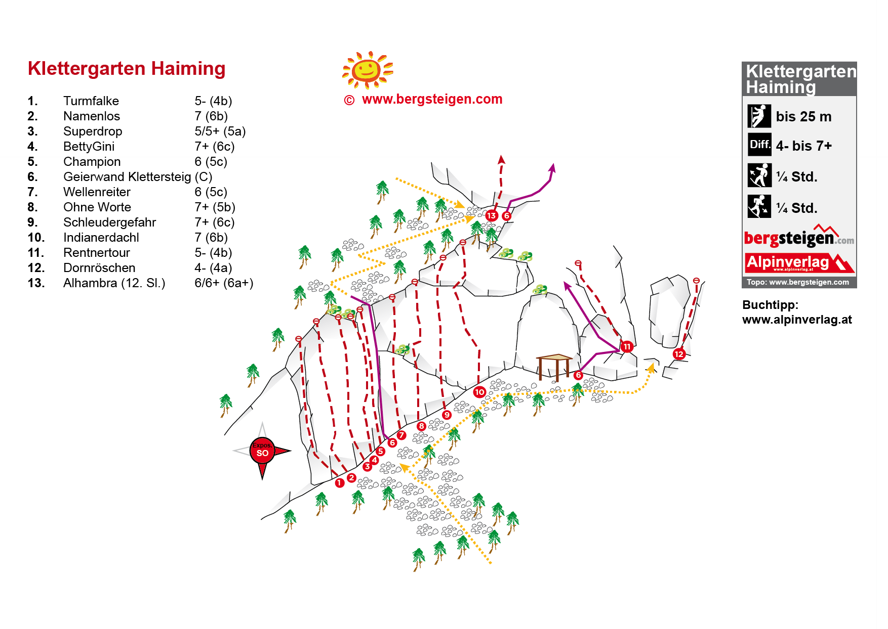 Kleiner Klettergarten unterhalb der Geierwand. An den nach Südosten ausgerichteten Felsen klettert man primär an Platten, vereinzelt auch an Rissen und über kleine Überhänge. Der Klettergarten ist schnell erreichbar und auch bei Kursen beliebt. Der Klettergarten wurde am Ende der 80er Jahre von Reinhard Schiestl und Gefährten eingerichtet.