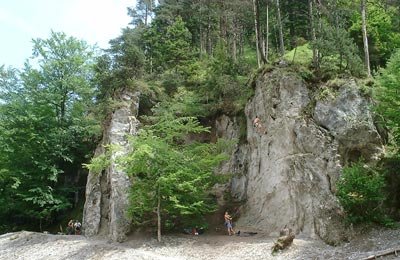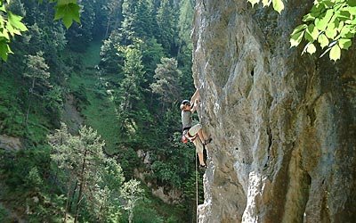 Schöner kleiner Klettergarten im hinteren Teil der Embachklamm. Die Routen sind relativ kurz und meist herrscht steile Wandkletterei vor. Ebener Untergrund (Schotter), kurzer Zustieg (20 min) und Kinderfreundlichkeit zeichnen dieses Gebiet aus.