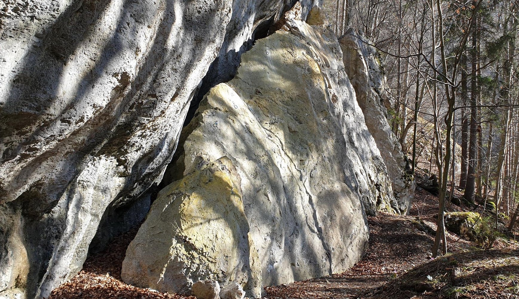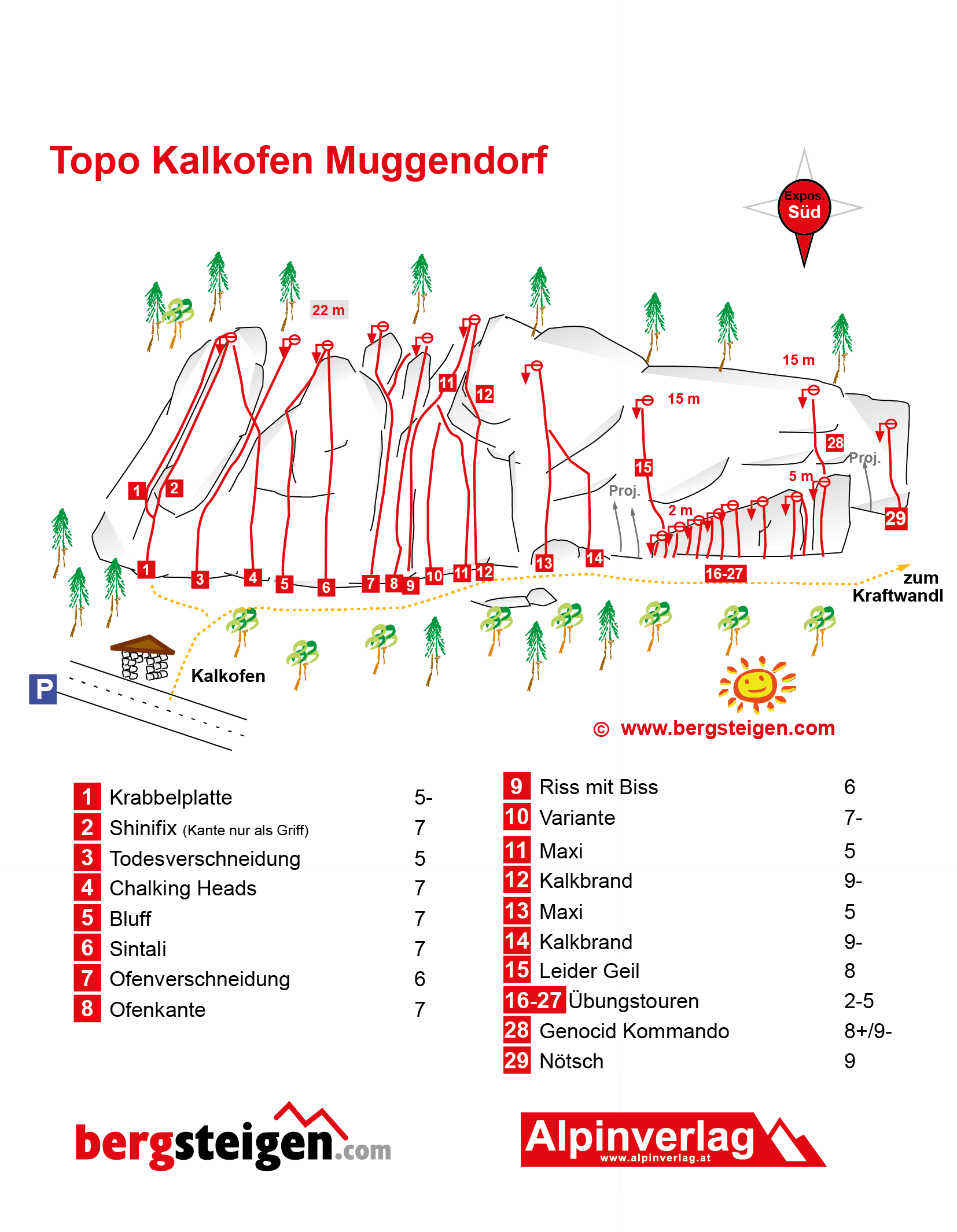 Vom Parkplatz kurz zum Kalkofen zurück und dahinter zur bereits gut sichtbaren Wand aufsteigen.