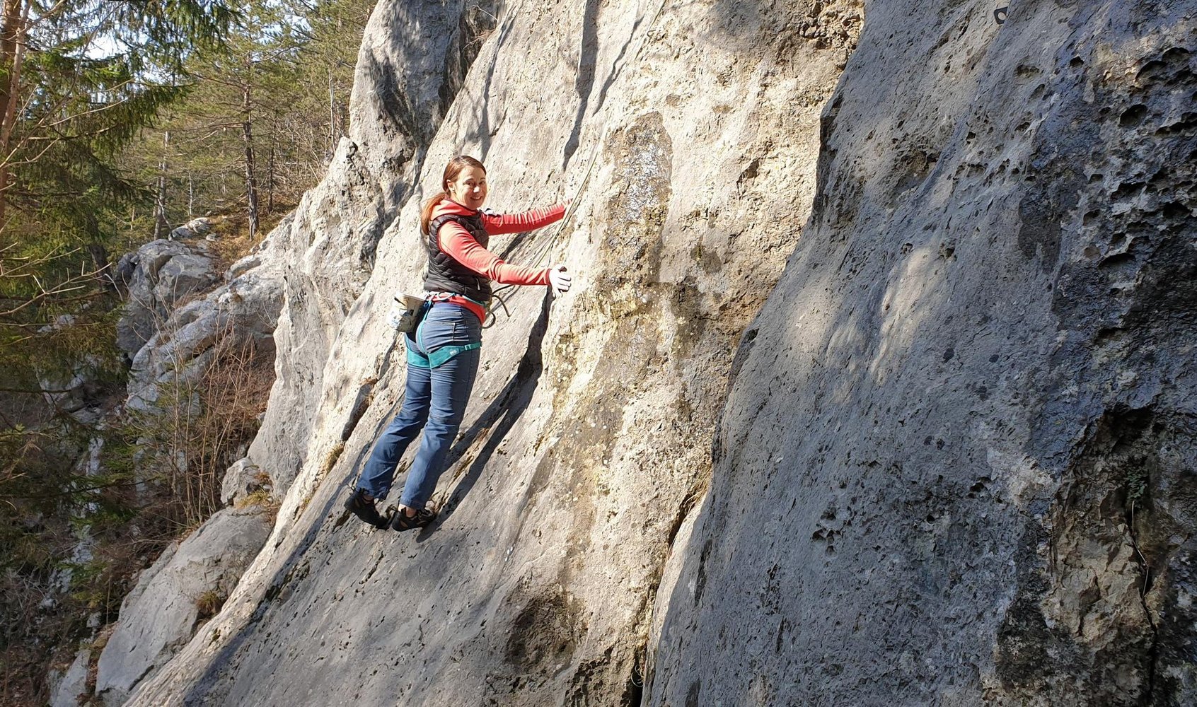 Sehr gut eingerichtete Routen mit Platten- und Wandkletterei im 5ten bis 7ten Grad. Der Fels ist fest und angenehm rau, die Kletterei allerdings recht technisch (d.h. gutes Steigen).
