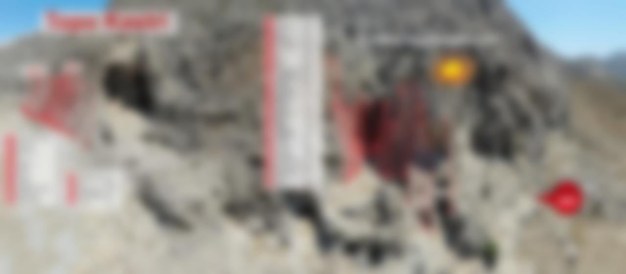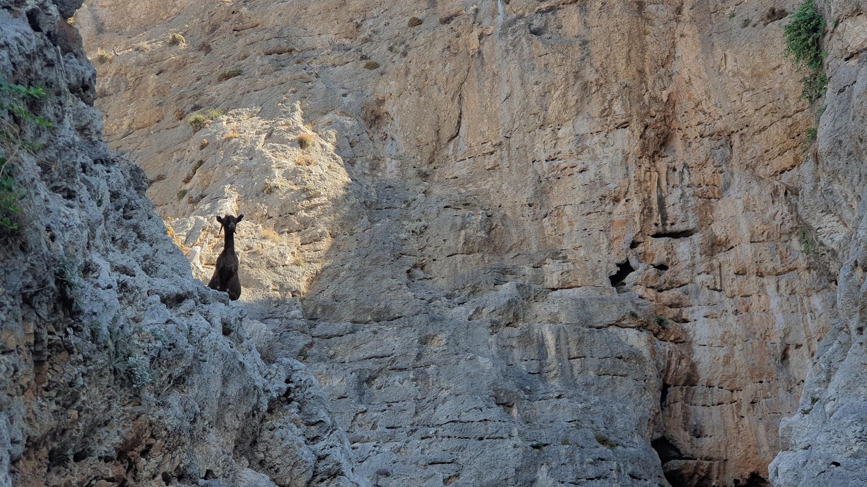 Das Tragen eines Helms wird in diesem Sektor stets empfohlen, da sich oberhalb der Wand oft Ziegen aufhalten.