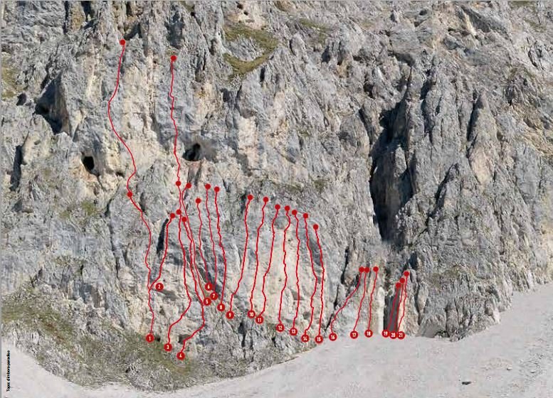Abgesichert wurden die Kletterrouten vom Erbauer und begeisterten Bergsportler Christian ‚Picco‘ Piccolruaz mit über 500 Bohrhaken aus Edelstahl und modernen Umlenkketten. Der überwiegende Teil der Touren sind mit Top-Rope-Karabinern ausgestattete Einseillängen-Routen, die es auch Alpin-Kletteranfängern ermöglichen sich am Fels zu versuchen.