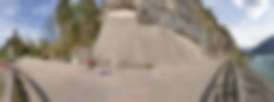 Vom Parkplatz auf die andere Seite der Bundesstraße und auf der Asphaltstraße in Richtung Süden zum Seeufer - man kommt genau zum Klettergarten.