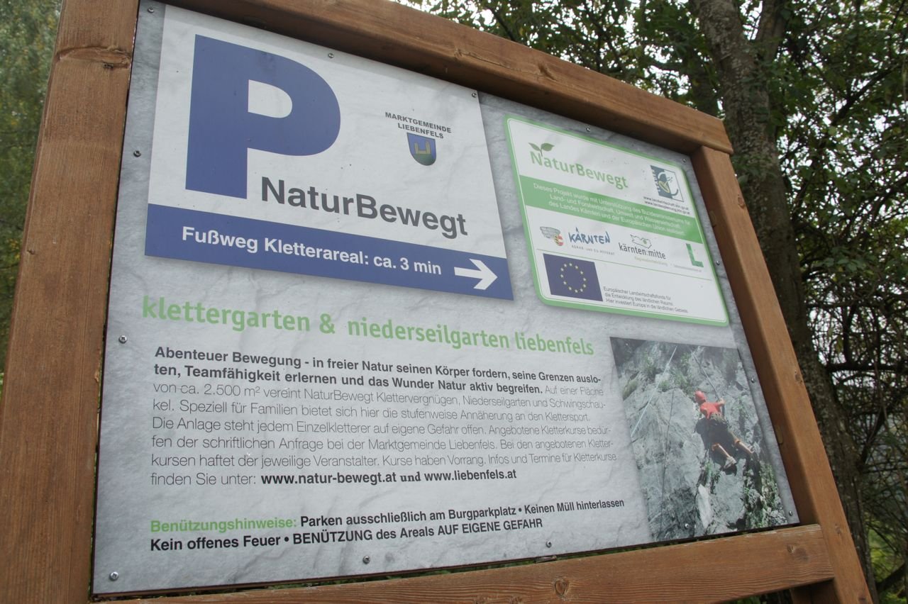Vom Parkplatz bei der Burg Liebenfels über einen Steig in östlicher Richtung leicht abwärts zum Klettergarten.