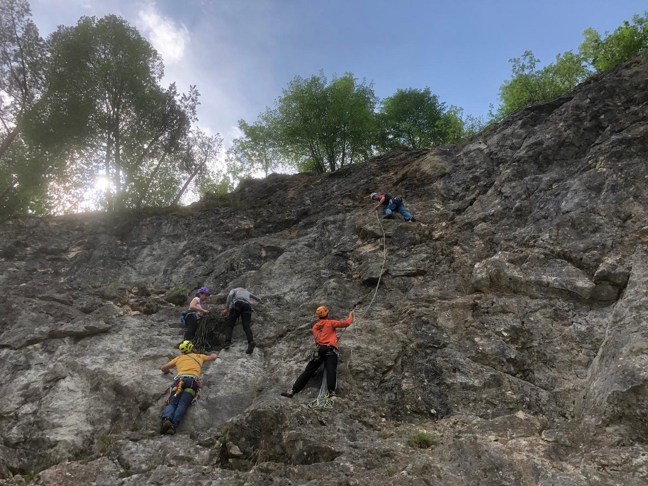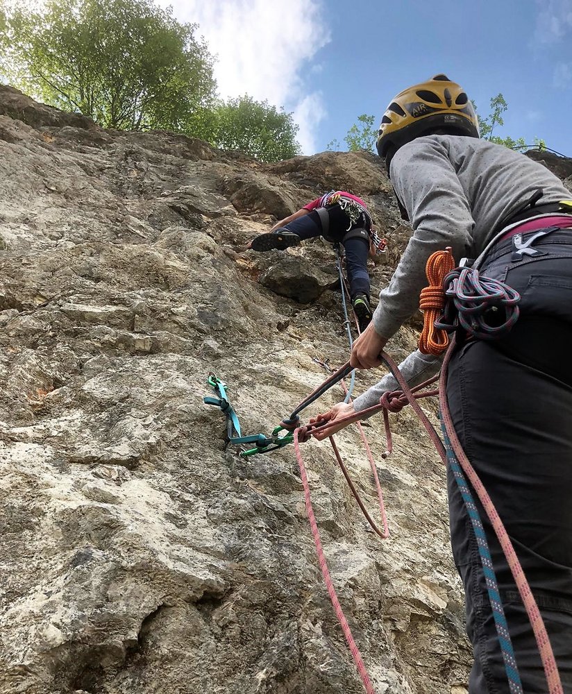 Kletterausrüstung und unbebingt Helm!