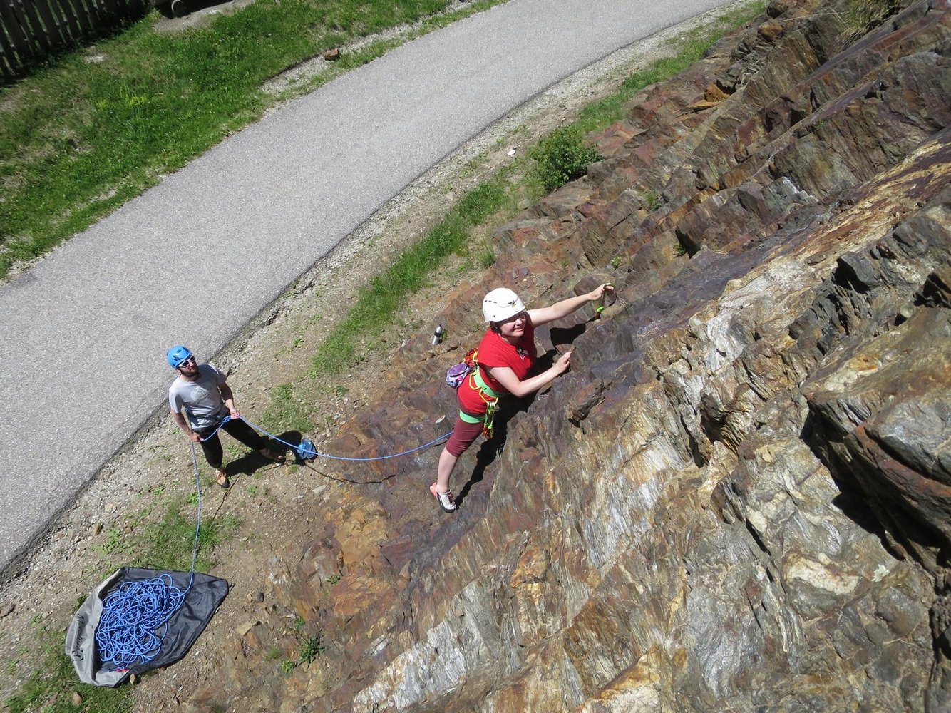 Vom Parkplatz in wenigen Schritten zum Fels