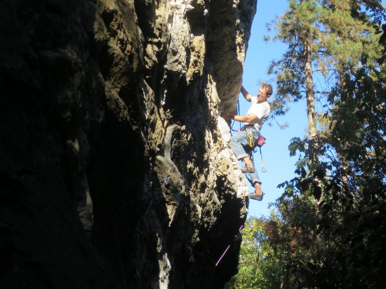 Kleiner aber feiner Klettergarten über den malerischen Weingärten der Maso Lizzone unweit von Arco. Rechts gibt es ein paar Platten- und Wandklettereien, ansonsten ist hier aber Ausdauer-Klettern gefragt, wobei es aber nie so richtig überhängend wird.