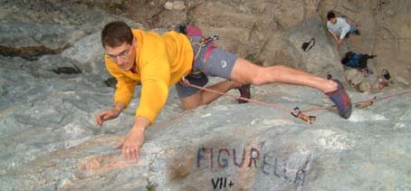 Expresschlingen und Seil (evtl. Helm).