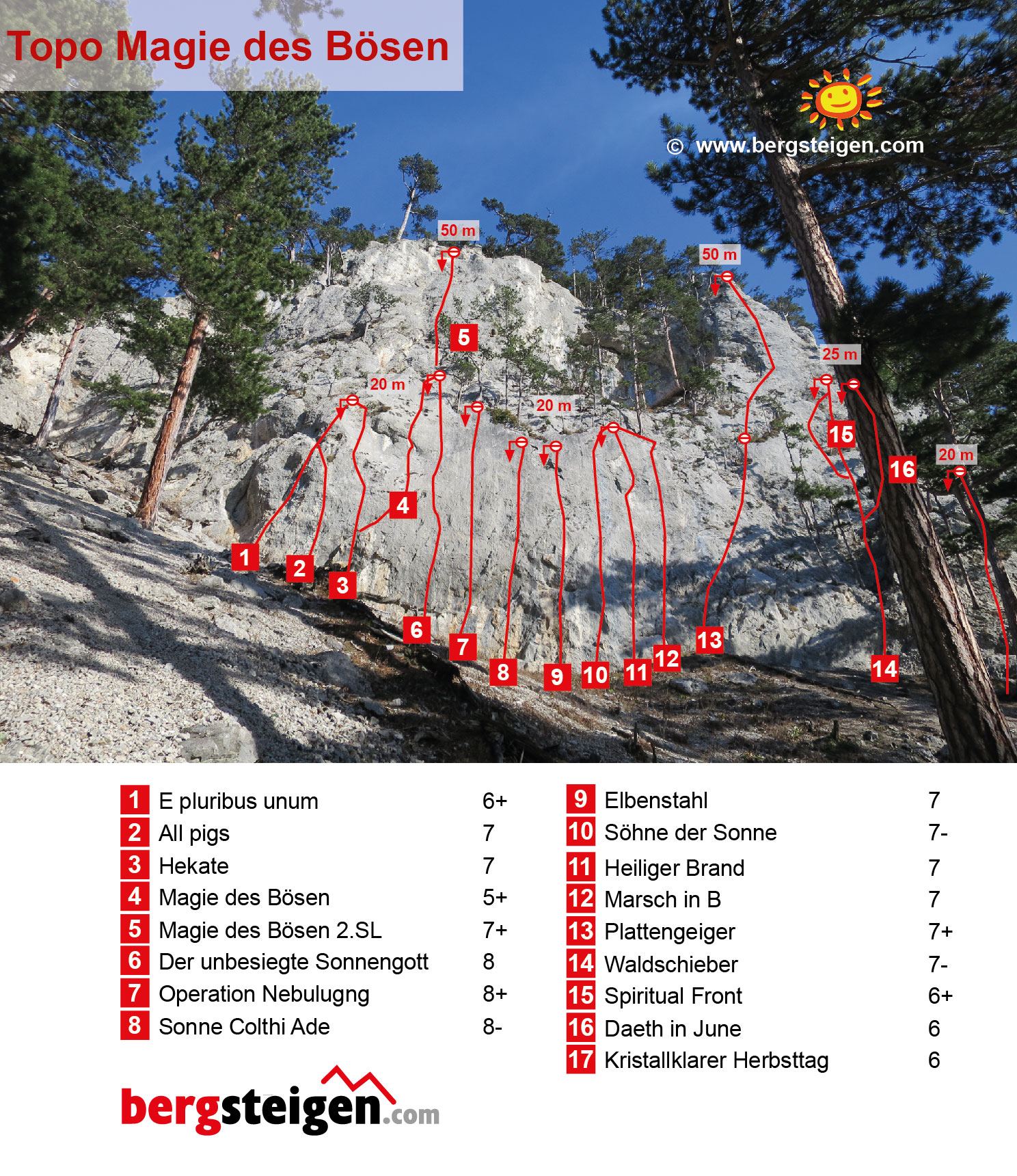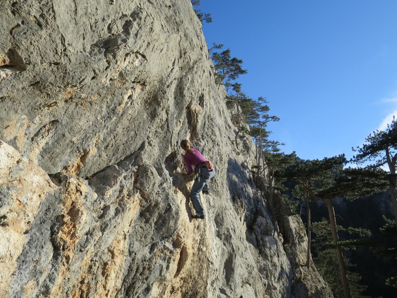 Wunderschön gelegener Klettergarten mit südseitiger Ausrichtung. Die Touren sind alle eher technisch und weisen durchwegs guten bis sehr guten Fels auf. Perfekt in Kombination mit der Route Krieg und Frieden.