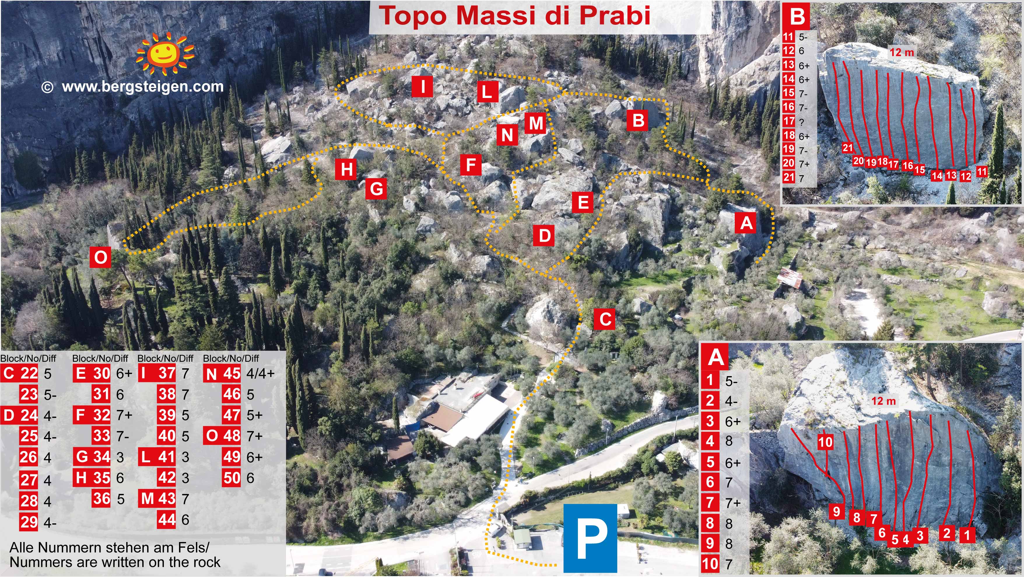 An den Blöcken am Fuß des Colordi in Arco wurden über 50 oft kurze Kletterrouten eingerichtet. Es gibt auch viele Boulder in allen Himmelsrichtungen. Die Routen sind großteils perfekt abgesichert und mit Nummern am Einstieg angeschrieben.
