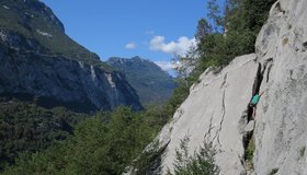 Sehr beliebter Klettergarten, die leichten Touren sind schon etwas glatt, oft sind recht viel Leute an die Felsen. Die Parkmöglichkeit an der Santa Maria di Laghel ist auf maximal 5 PKW beschränkt (besser zu Fuß oder mit dem Bike).