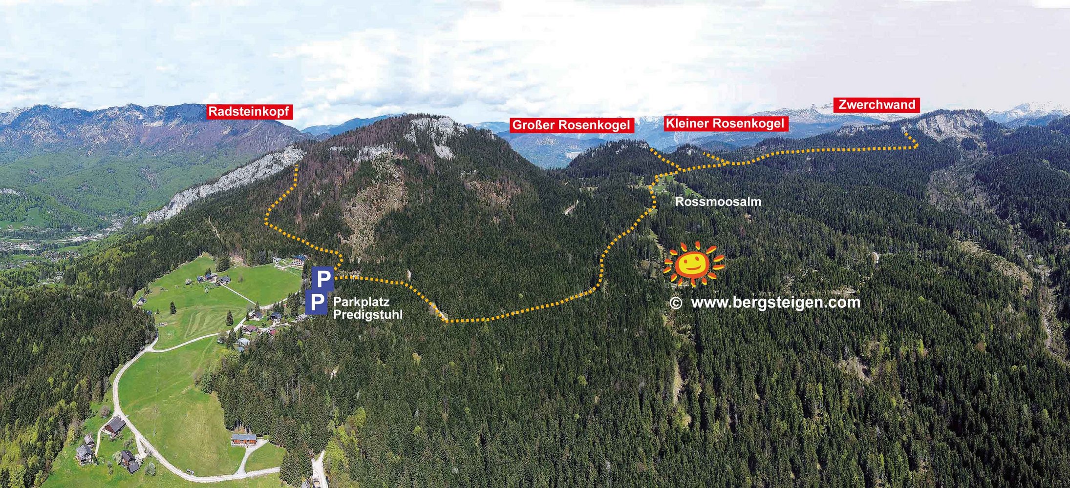 Vom Parkplatz beim Schranken vorbei und der Forststraße nordöstlich in Richtung Hütteneckalm folgen. Mann kommt bald zu den Almhütten der Roßmoosalm. Oberhalb der obersten Almhütte der Forststraße noch ca. 3 Min. bis in die zweite Kurve folgen und links in wenigen Schriten zur bereits gut sichtbaren Wand. Mit dem MTB kann man in 15 Min. fast bis zur Wand fahren.