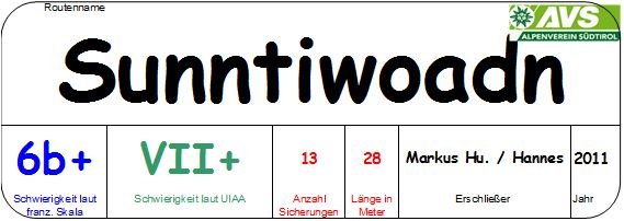 Die eindrucksvolle Felspyramide liegt am steilen Sonnenberg oberhalb Rabland auf einer Meereshöhe von 1.450 Meter. Die Ausgesetztheit der Routen, die 5 Aussichtsterrassen, der Trog mit fließend Wasser und Grillplatz mit Tisch und Bänken und das traumhaftes Panorama auf die Dolomiten und dem Meraner Raum machen diesen Platz zu etwas ganz Besonderem. Weiterführende Infos unter: huafwond.jimdo.com