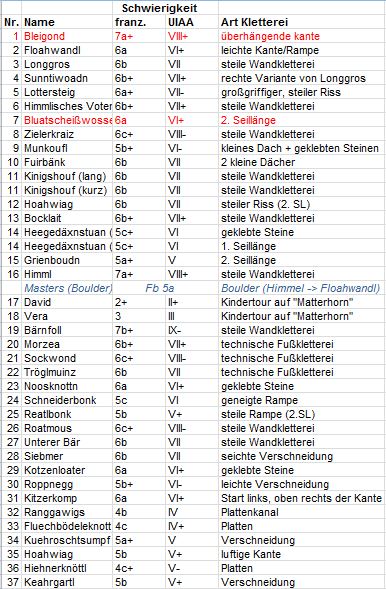 Alle Touren sind am Einstiegsbereich mit Infokärtchen (Name, Schwierigkeit, Länge, ...) ausgestattet.