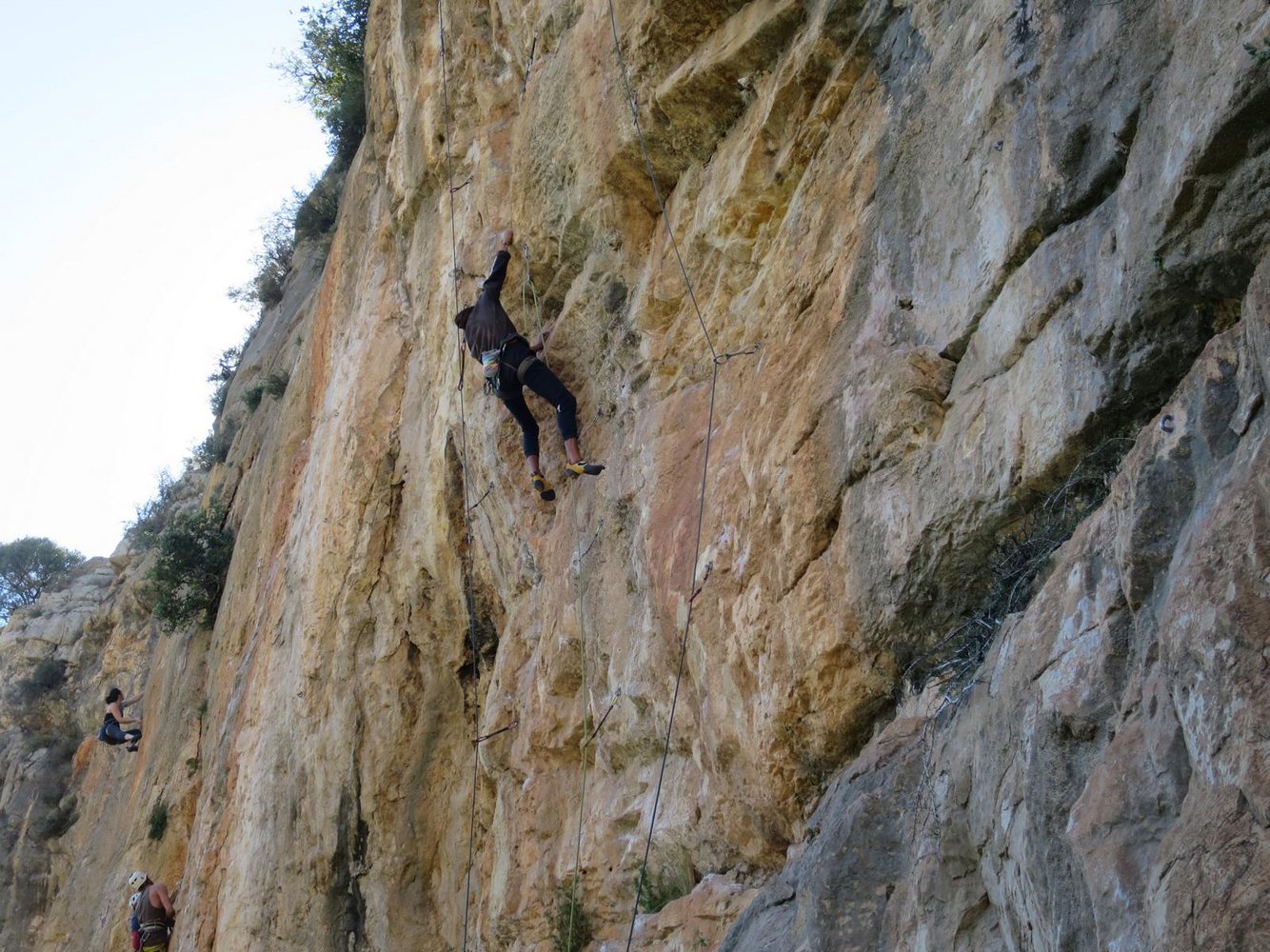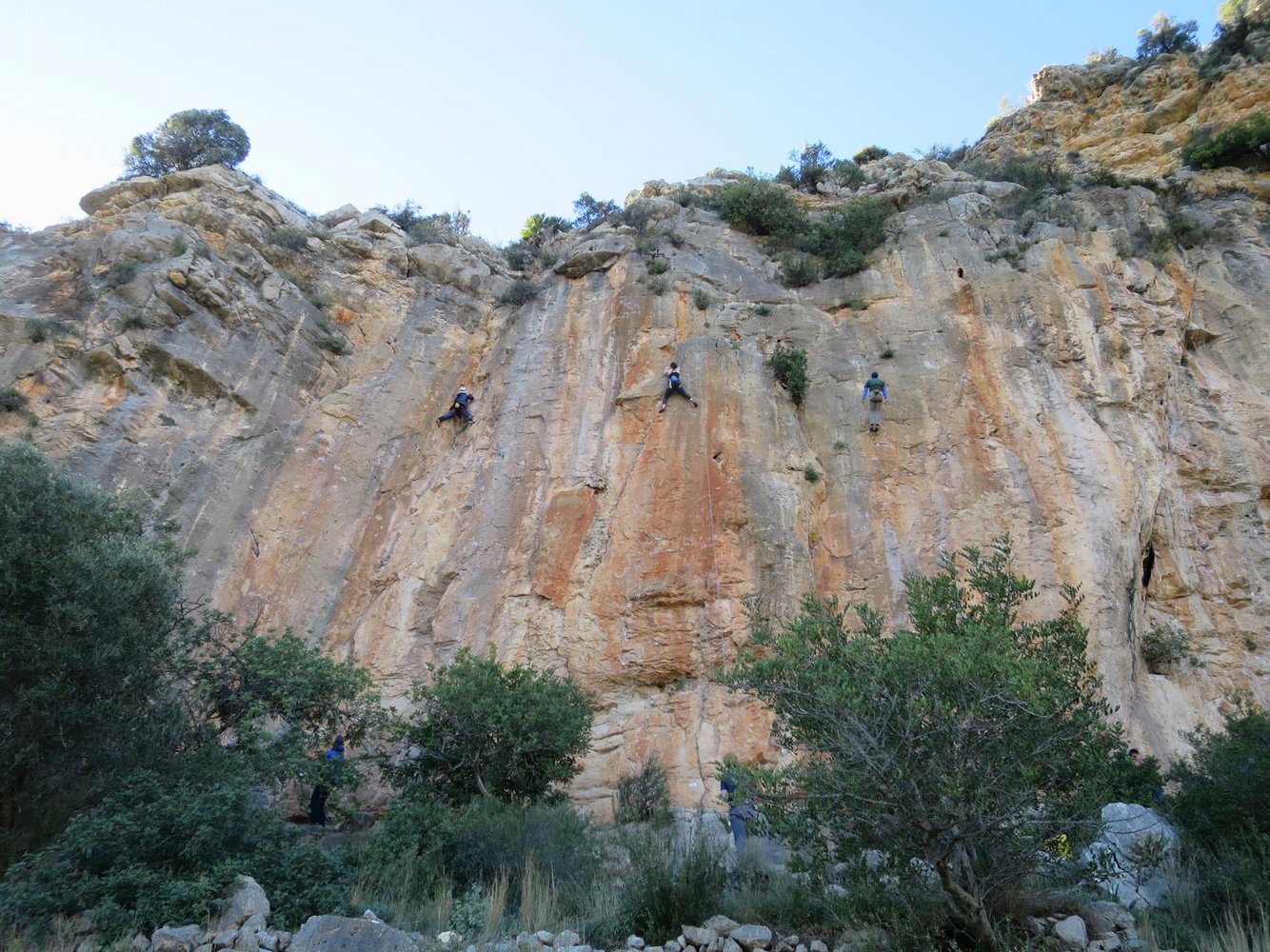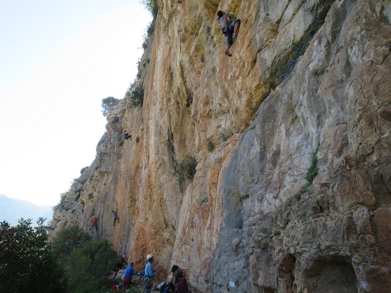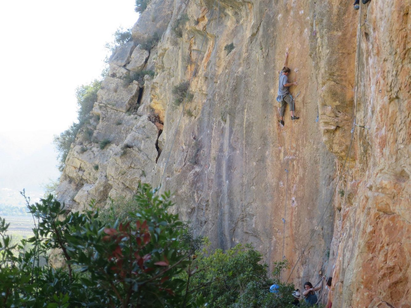 Kleines aber tolles Gebiet, das ab Mittag Schatten bietet. Die meisten Touren bewegen sich zwischen 7+ und 9-, eine gute handvoll ist auch im 6a-Bereich. Die Kletterei ist technisch anspruchsvoll und im rechten Teil auch überhängend. Der Fels ist sehr gut. Wenn es heiß ist, finden sich hier verständlicherweise aber sehr viele Leute ein.