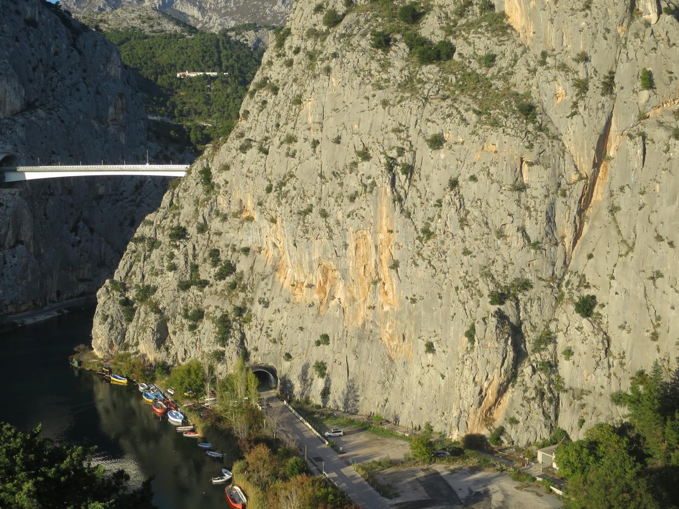 Von Split nach Omiš und direkt am südöstlichen Ende Brücke nach Norden ins Cetina Tal. Entweder nach 200 m direkt nach dem Tunnel beim Klettergarten oder im Ort parken. (Gebühr).