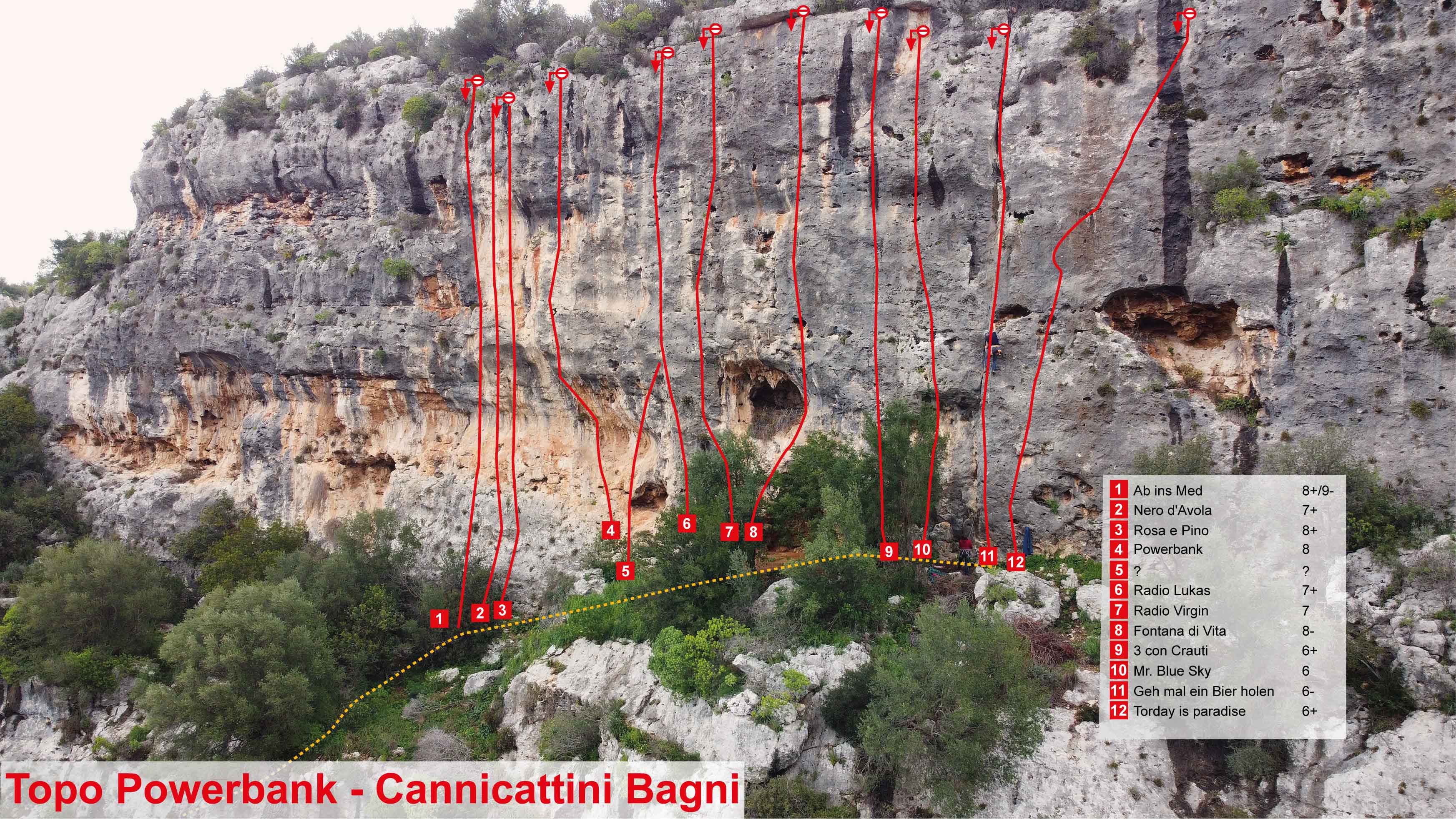 Die meisten Kletterer kennen nur San Vito in Sizilien, der weitläufige Canyon um Canicattini Bagni gehört mitunter zu den besten Spots der Vulkaninsel. Es gibt hier viele Sektoren mit großteils steilen Routen. Der Sektor Powerbank gehört zu den besten. Sehr aktiv beim Erschließen sind hier Stefan Löw und Christoph Stahr.