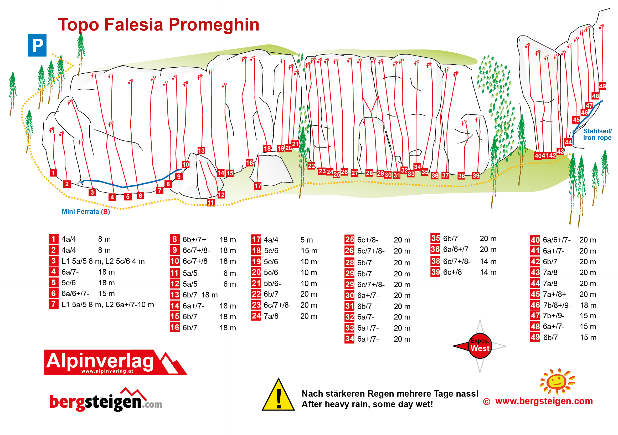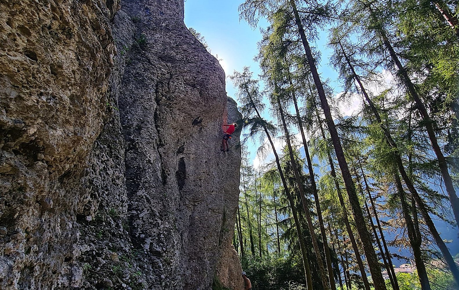Toller, schattiger Konglomorat-Klettergarten unterhalb des Sportplatzes von San Lorenzo Dorsino. Aufgrund der westseitigen Lage und der vielen Bäume vor den Felsen ist der Klettergarten fast den ganzen Tag im Schatten und daher das perfekte Sommer-Klettergebiet im Großraum Arco. Die Touren sind steil, griffig und gut gesichert, aber nur schwach und tlw. falsch an den Einstiegen nummeriert.