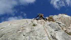 Aufgrund der exponierten Lage, der fehlenden Umlenker und der einzigen Zustiegsmöglichkeit über Kletterrouten ist der Ratengrat Aufbau kein Klettergarten im eigentlichen Sinn. Eher ein Klettergartn am Ende einer Kletterroute. Wir haben uns dennoch erlaubt die vielen Routen in der Rubrik Klettergarten zusammenzufassen.