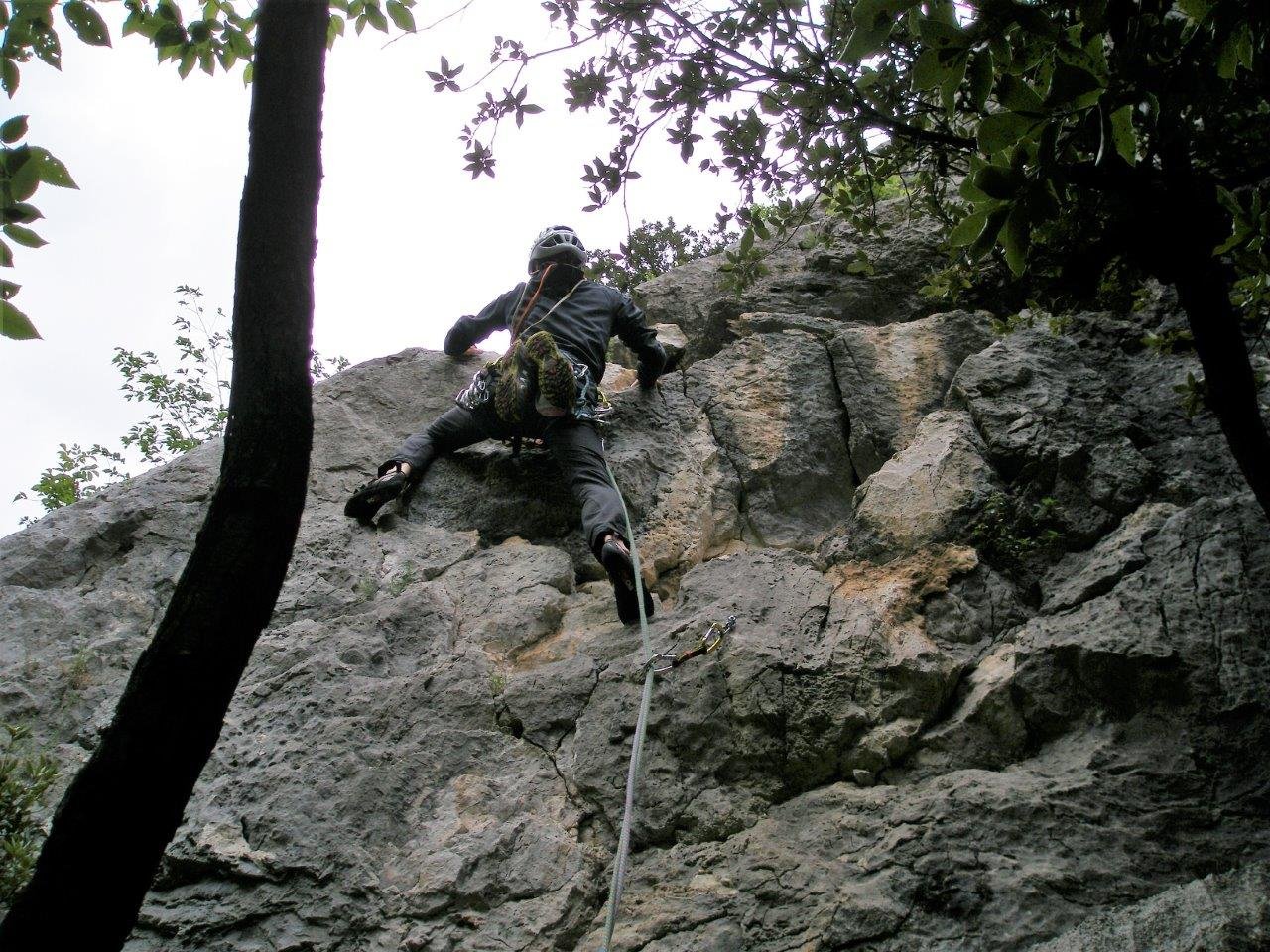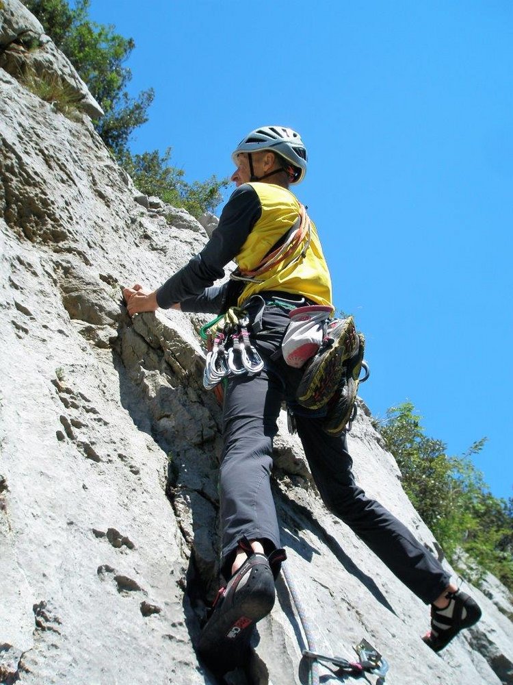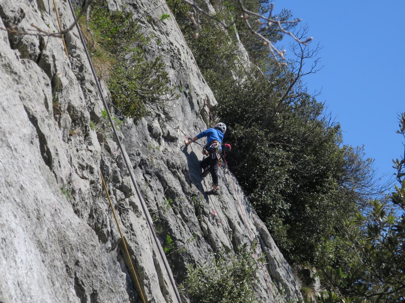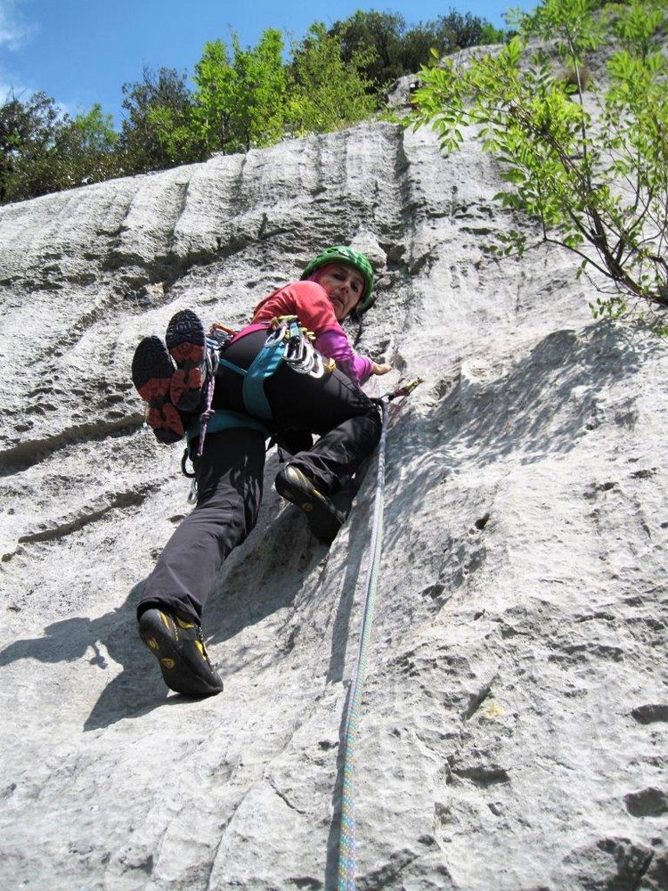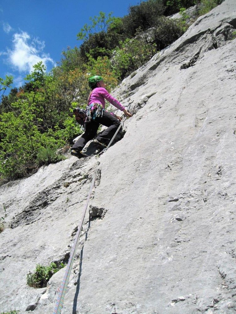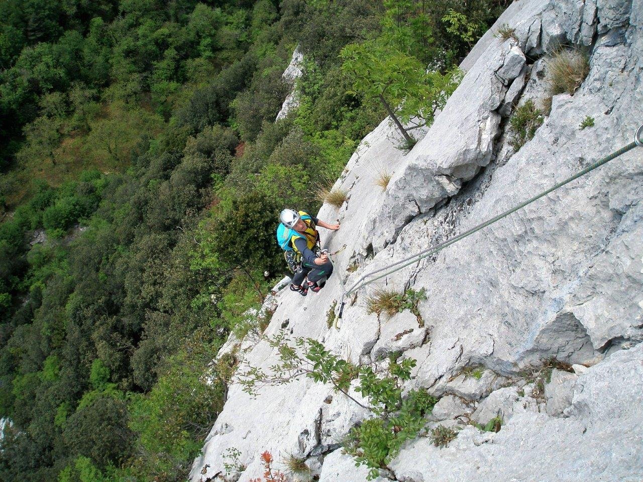 Sehr schöner und großer Klettergarten mit leichten Plaisir-Routen. Vielleicht der Top Klettergarten in Arco für Kletterer im Bereich 5-7. Die auf zwei Ebenen verteilten Touren sind nie richtig steil und perfekt mit Bohrhaken gesichert. Es gibt auch einige Mehrseillängen Touren und unter dem Gebiet noch zwei Sektoren mit ausschließlich leichten MSL Touren.